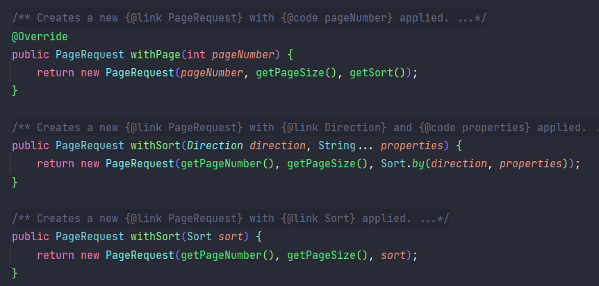 page나 sort를 PageRequest에 direct로 설정하지 않고 따로 설정하고 싶다면 withPage, withSort를 활용하면 된다