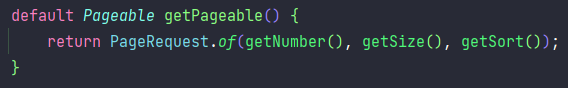 getPageable()은 메소드명 그대로 Slice된 페이징 데이터에 대해서 "어떤 PageRequest"로 페이징해서 가져왔는지를 판별하는 메소드이다