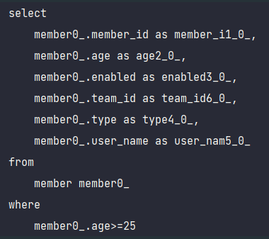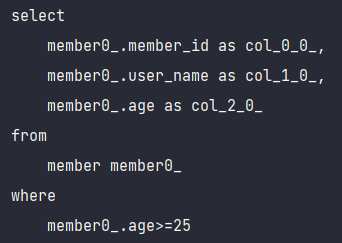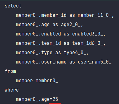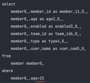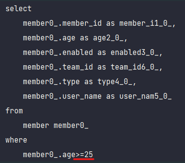 .where(member.age.eq(25)) // 멤버 나이가 25살