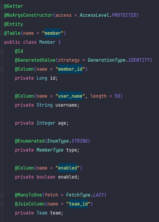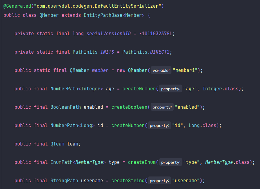 Member Entity의 모든 필드는 QMember에서 프로퍼티 접근을 통해서 접근할 수 있게 생성되었다