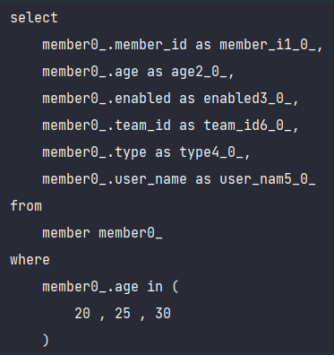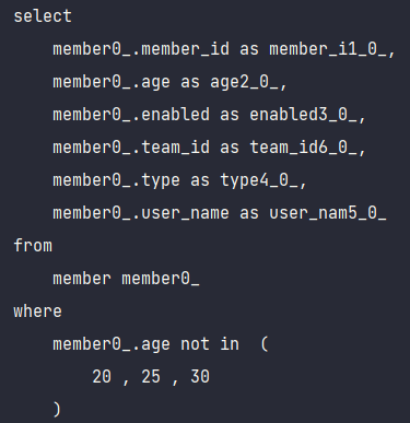 .where(member.age.eq(25).not()) // 멤버 나이가 25살이 "아닌"