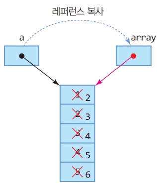 - 객체에 대한 레퍼런스를 원소로 갖는 배열