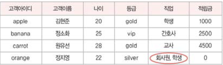 - 무결성 : 데이터가 항상 정확한 값을 유지하는 성질