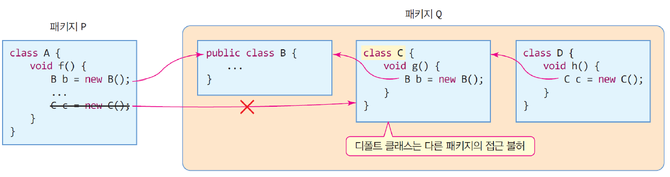 - 동일 패키지 내에 있는 클래스들만 default 멤버에 접근