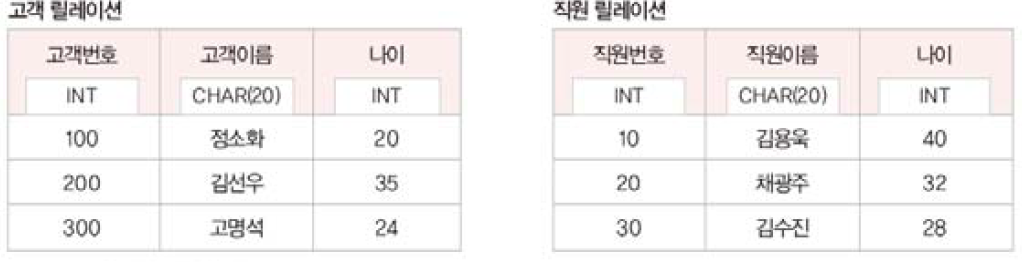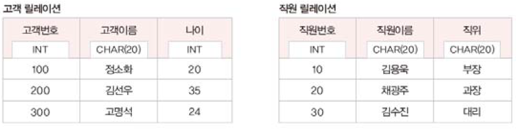 - 두 릴레이션을 연결시켜 하나로 합칠 때 사용