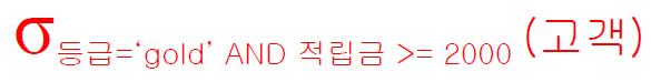 - 릴레이션에서 원하는 행(투플)을 추출하기 위한 연산자