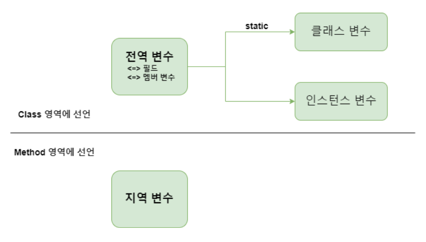 | 전역변수 | 클래스 변수 (static) |